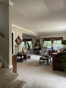 L-shaped living room to a dining