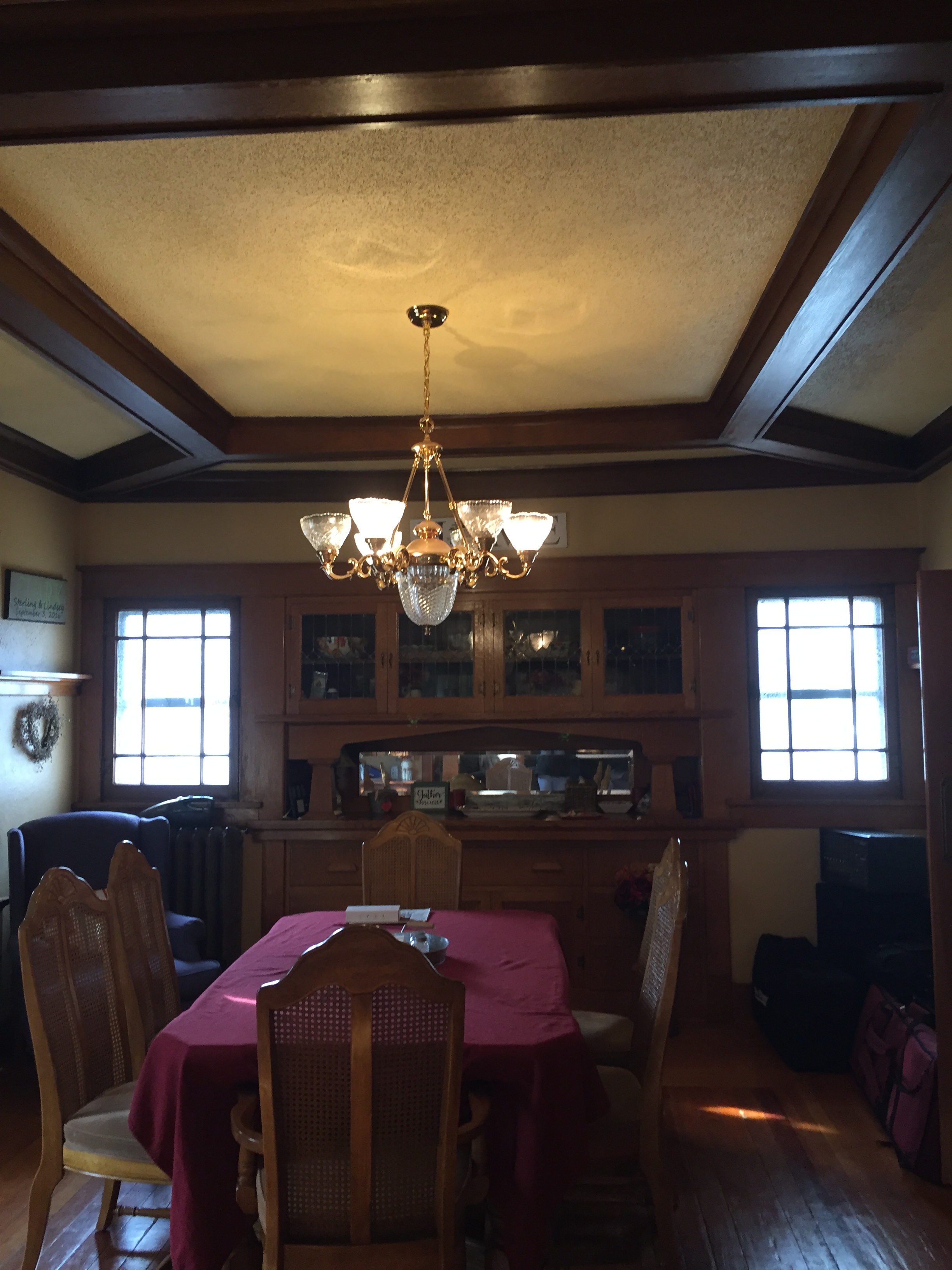 hutch, window seat and wood floors.